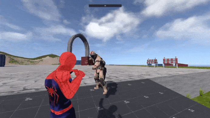 Combat Lock-on targeting, alternating punch combos, knockback, and health bars. Walk up to someone and start swinging. Simple, satisfying, chaotic with more than two people.